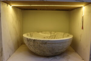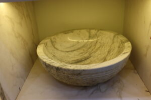 - Elegant Natural Marble – Crafted from high-quality white marble with unique veining for a luxurious, timeless look.